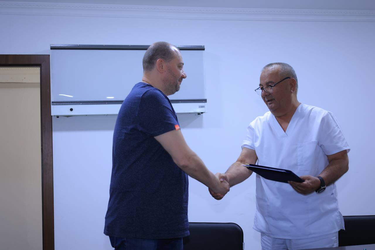 2024 йил 4-июн куни марказимиз режасига киритилган юқори технологик операциялар ўтказиш, болаларда буйрак кўчириб ўтказиш амалиётини марказда жорий этиш учун дунёнинг энг нуфузли тиббиёт ташкилотларидан бири саналган Белоруссия Республикаси “Нефрология, Буйрак алмаштириш терапияси ва трансплантология маркази” раҳбари тиббиёт фанлари доктори, профессор Олег Валентинович Калачик ни ташрифи амалга оширилди. Ташриф давомида мутахасисга Самарқанд вилоят кўп тармоқли...